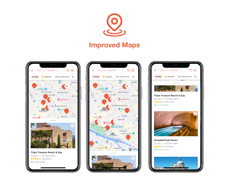 Enhanced digital maps by focusing on usability and precision, aligning closely with tech and stakeholders to prioritize bite-size features. This project optimized navigation experiences, directly addressing user pain points and driving engagement, becoming the main driver for an improved Booking Vision 2024.